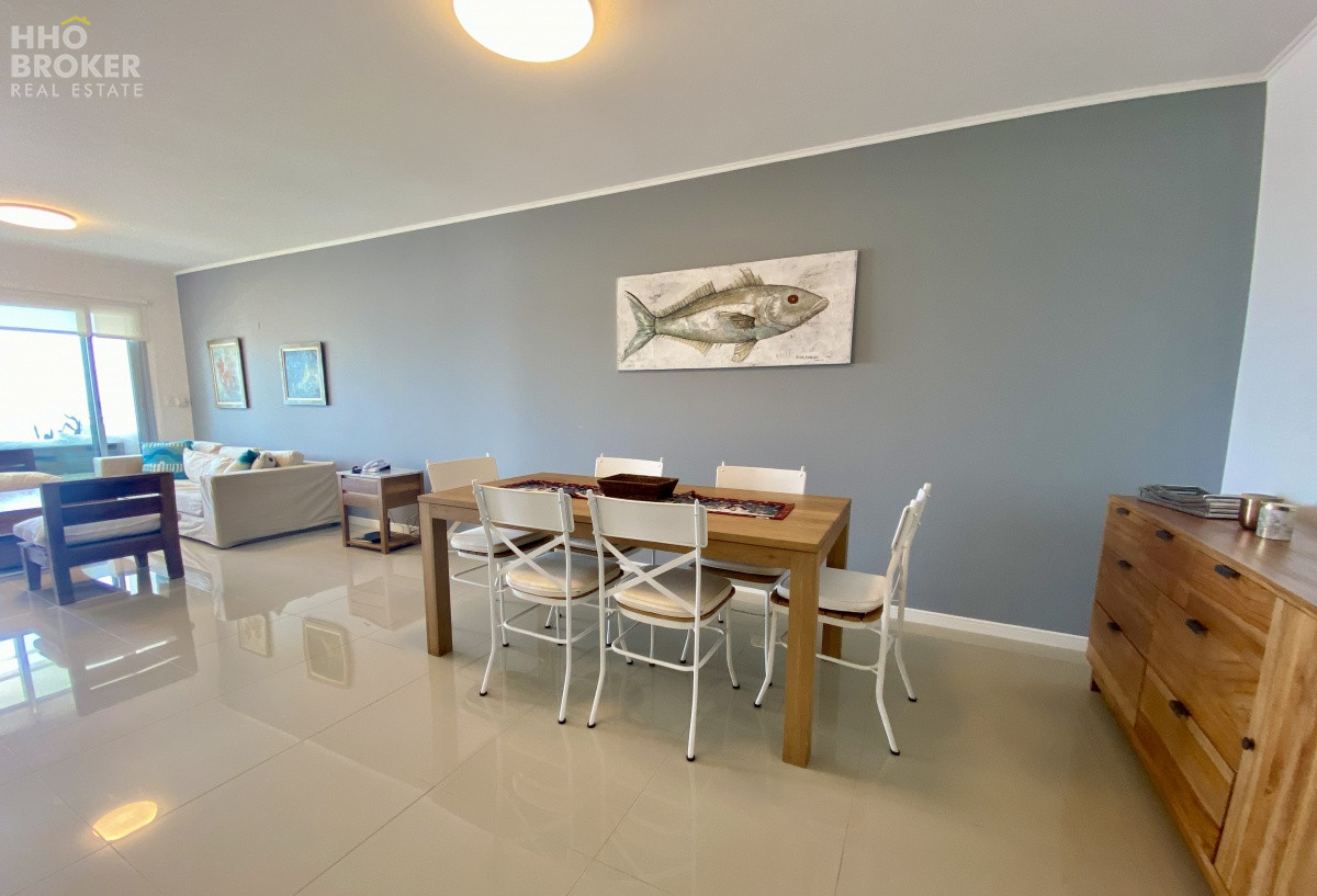 con 2 dormitorios en suite, total 3 baños, cocina definida, linda terraza con vista al mar.