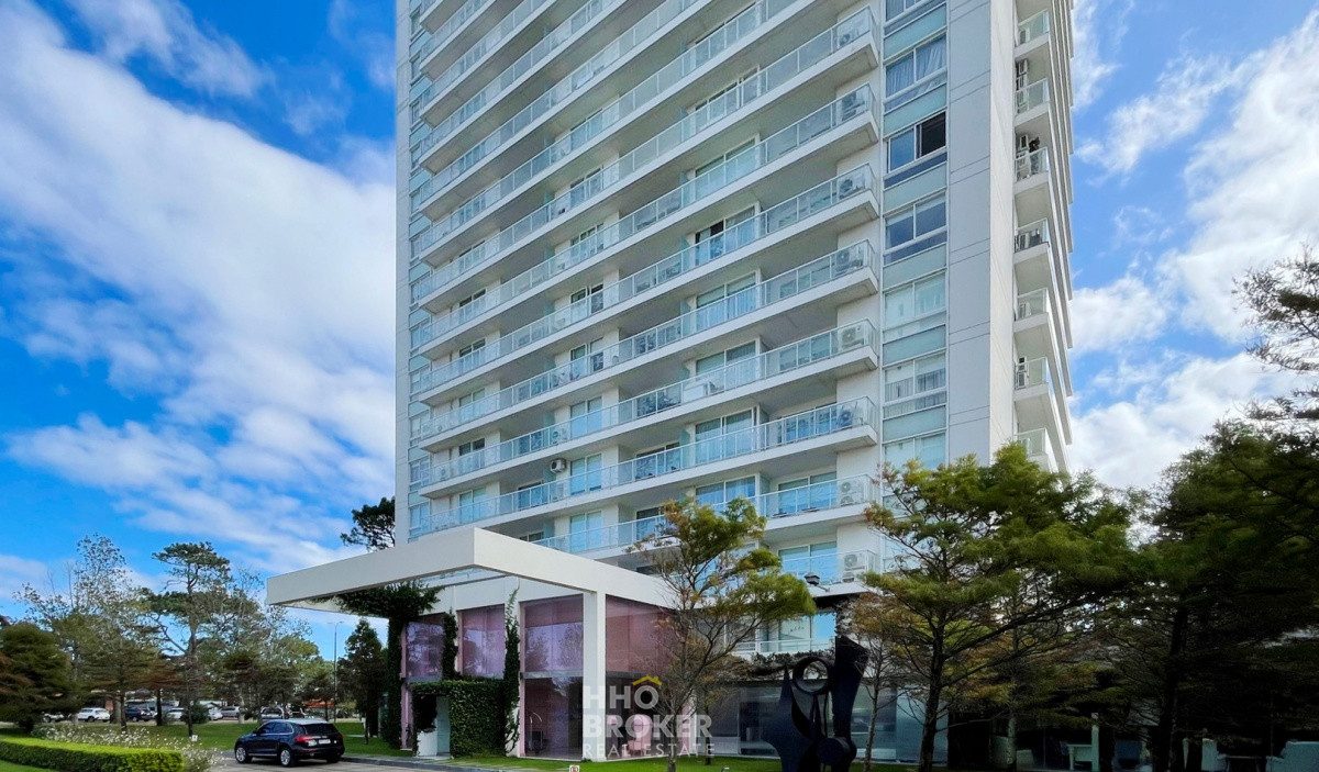 Hermoso departamento en piso alto, con vista despejada al bosque, living comedor con salida a la terraza, cocina semi integrada, 2 dormitorios, 2 baños (1 suite), garaje para dos autos.