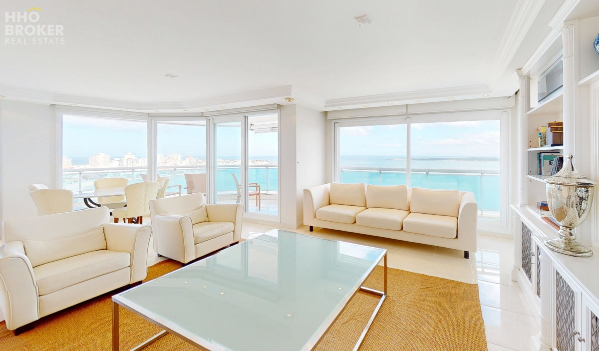 El apartamento se caracteriza por su luminoso y espacioso living y comedor, una vista panorámica impresionante de la bahía, que se extiende desde el Puerto de Punta del Este, pasa por la Isla Gorriti y culmina con hermosos atardeceres sobre la Playa Mansa, cocina definida con lavadero, además de contar con un garaje.