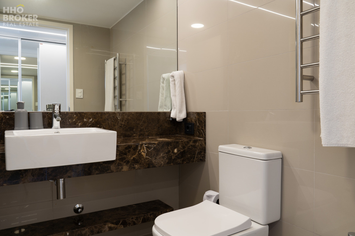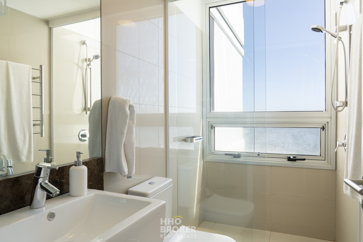 El apartamento disfruta de sol durante todo el día: por la mañana en el living y la suite principal (orientación norte y este), y por la tarde en la cocina, lavadero y las tres suites orientadas al oeste.