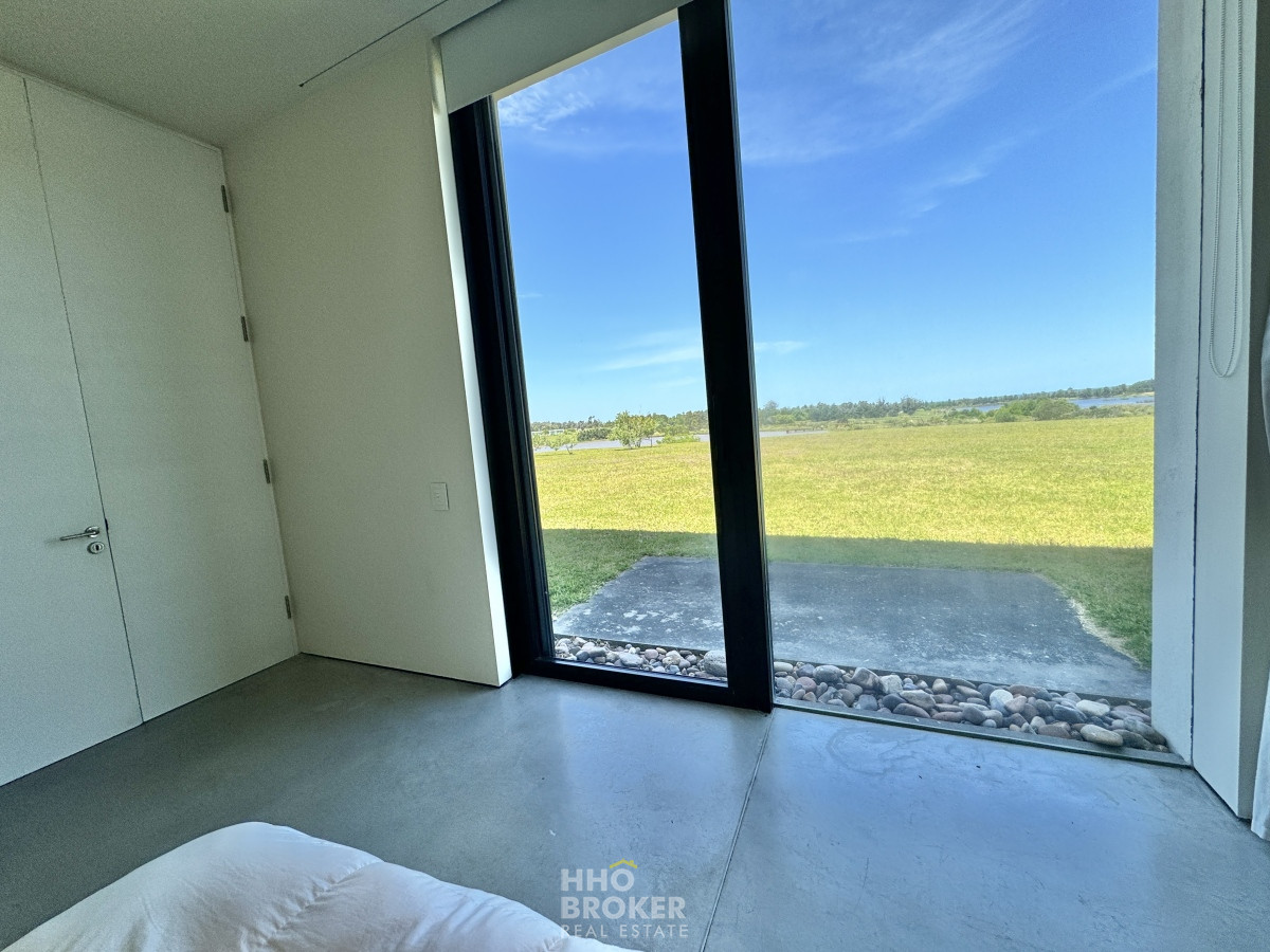 Construida con grandes ventanales, materiales de primera calidad y diseñada de forma que se aprecia la encantadora vista fusionada entre agua y campo desde todos los ambientes.